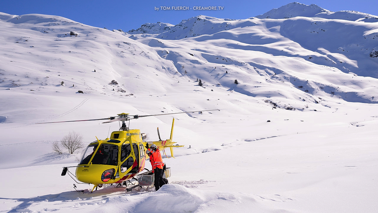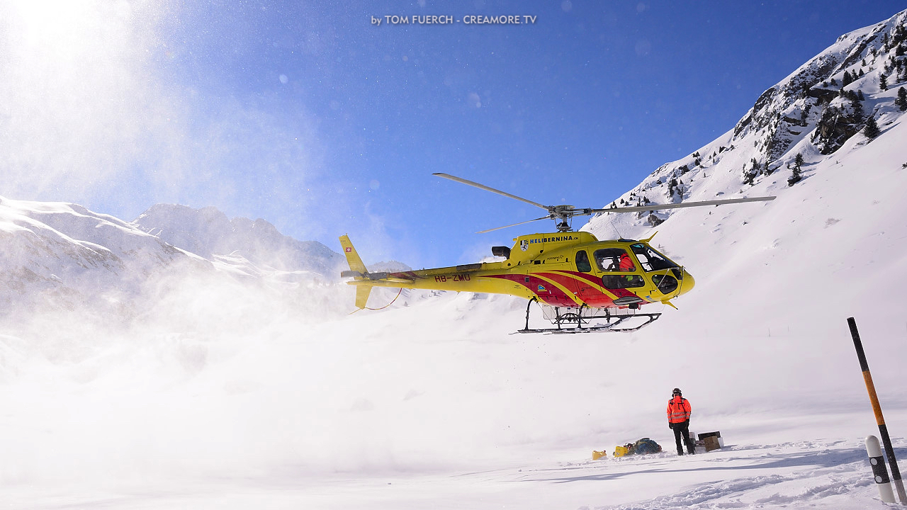 …die großartigen Piloten vom Team HeliBernina auf dem Flüelapass in Aktion – Anfang April 2015